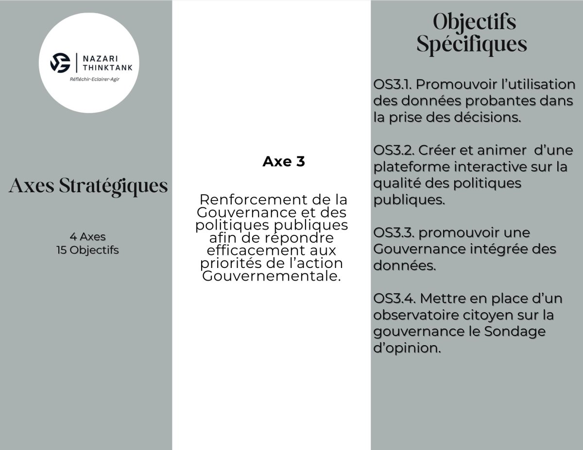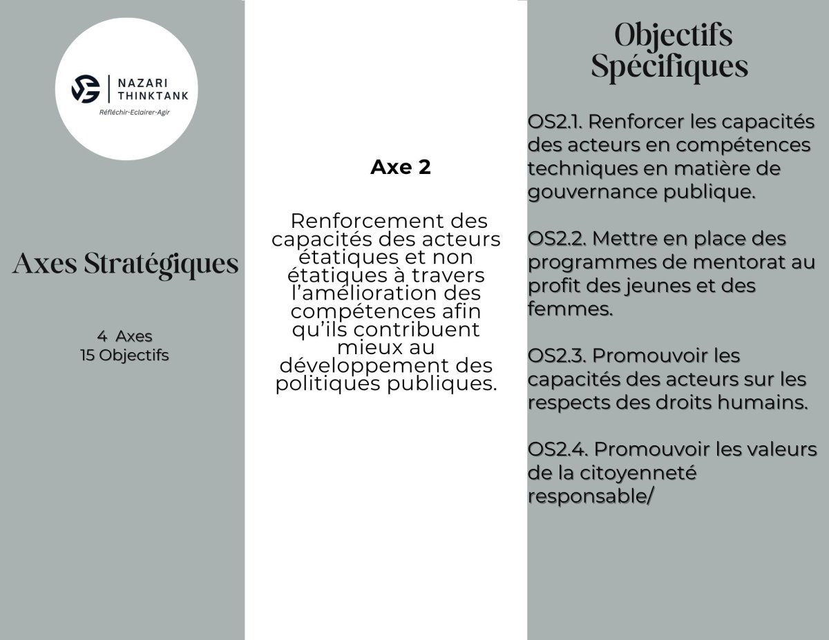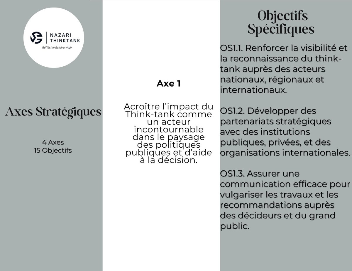 Pour remplir ces missions, NAZARI s’engage à produire les réflexions des experts, analystes et spécialistes sur les grands enjeux de notre époque: en éclairant les grands débats nationaux à partir de la connaissance de leurs problématiques au Niger et partout dans le monde, en identifiant et en fédérant les talents qui peuvent contribuer à la réflexion et participer par leur action personnelle à l’évolution de la société, et en réunissant ces acteurs autour des valeurs et d’une éthique affichée par le centre et qui font l’objet d’une charte annexée au règlement intérieur.